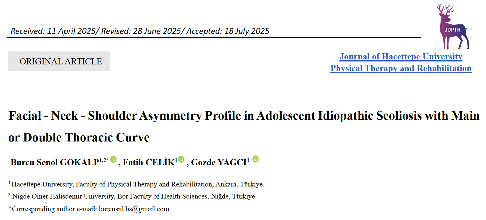 Original ArticlePublished on September 05 2025Facial - Neck - Shoulder Asymmetry Profile in Adolescent Idiopathic Scoliosis with Main or Double Thoracic Curve Burcu Şenol Gökalp, Fatih Çelik, Gözde Yağcı