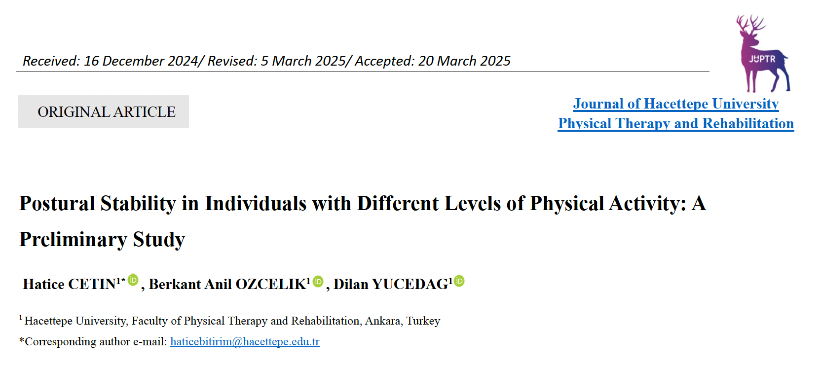 Original ArticlePublished on May 27 2025Postural Stability in Individuals with Different Levels of Physical Activity: A Preliminary Study Hatice Çetin, Berkant Anıl Özçelik, Dilan Yücedağ