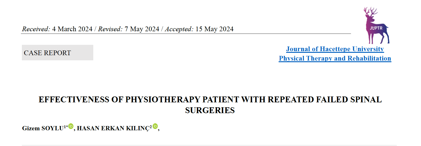 Case ReportPublished on June 24 2024EFFECTIVENESS OF PHYSIOTHERAPY PATIENT WITH REPEATED FAILED SPINAL SURGERIES Gizem Soylu, Hasan Erkan Kılınç