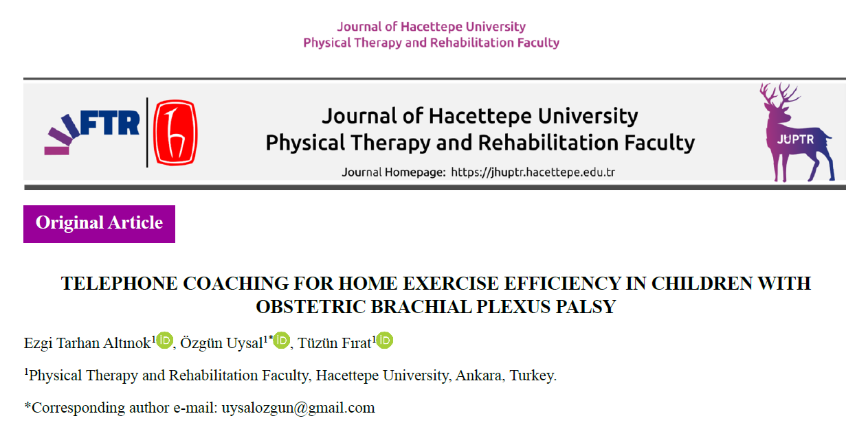 Original ArticlePublished on November 27 2023TELEPHONE COACHING FOR HOME EXERCISE EFFICIENCY IN CHILDREN WITH OBSTETRIC BRACHIAL PLEXUS PALSY Ezgi Tarhan Altınok, Özgün Uysal, Tüzün Fırat