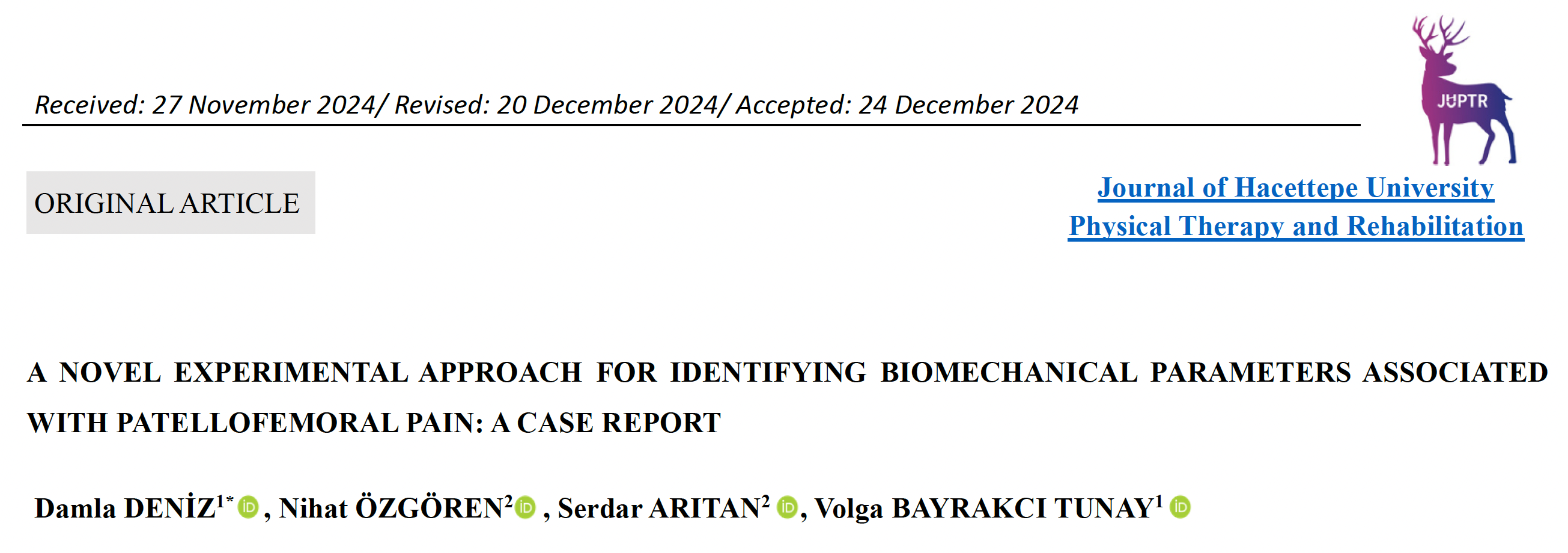 Case ReportPublished on December 31 2024A NOVEL EXPERIMENTAL APPROACH FOR IDENTIFYING BIOMECHANICAL PARAMETERS ASSOCIATED WITH PATELLOFEMORAL PAIN: A CASE REPORT Damla Deniz, Nihat Özgören, Serdar Arıtan, Volga Bayrakcı Tunay