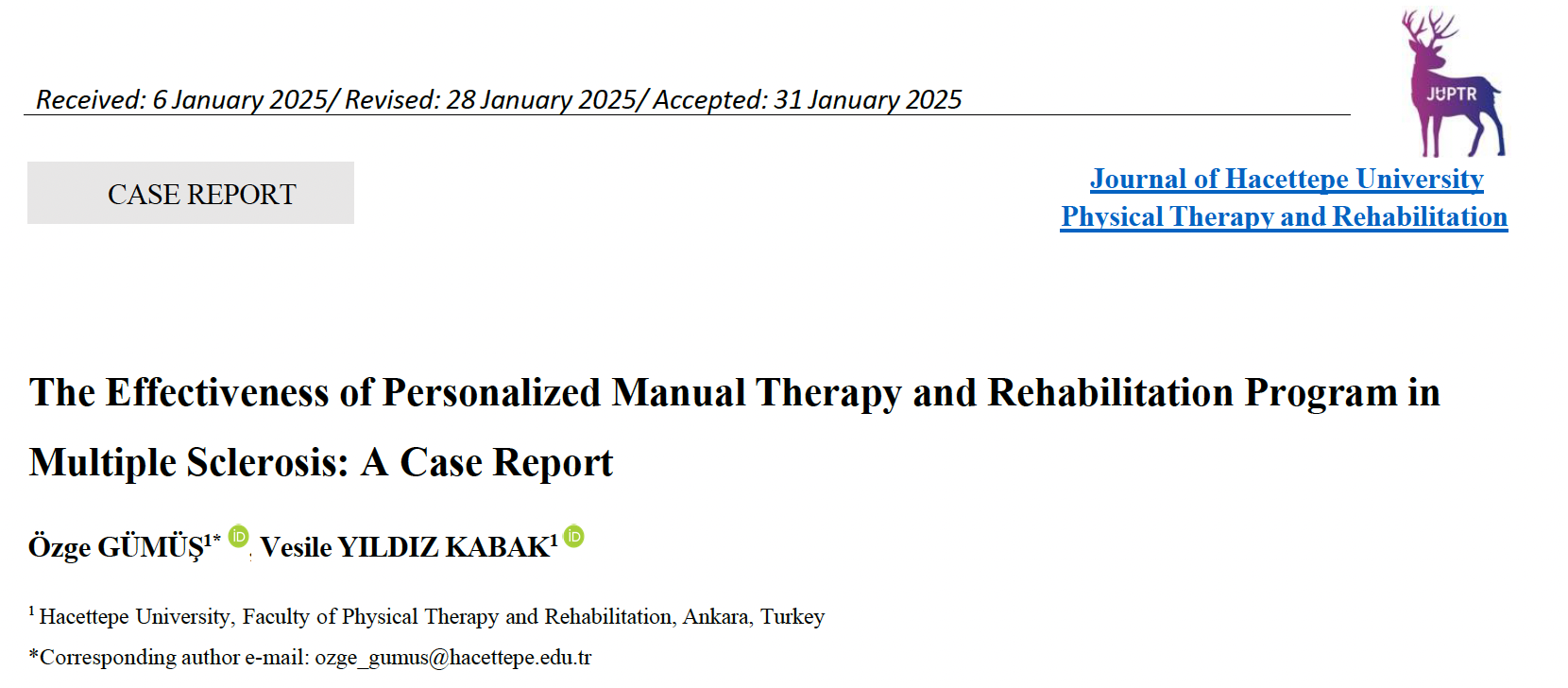 Case ReportPublished on May 27 2025The Effectiveness of Personalized Manual Therapy and Rehabilitation Program in Multiple Sclerosis: A Case Report Özge Gümüş, Vesile Yıldız Kabak